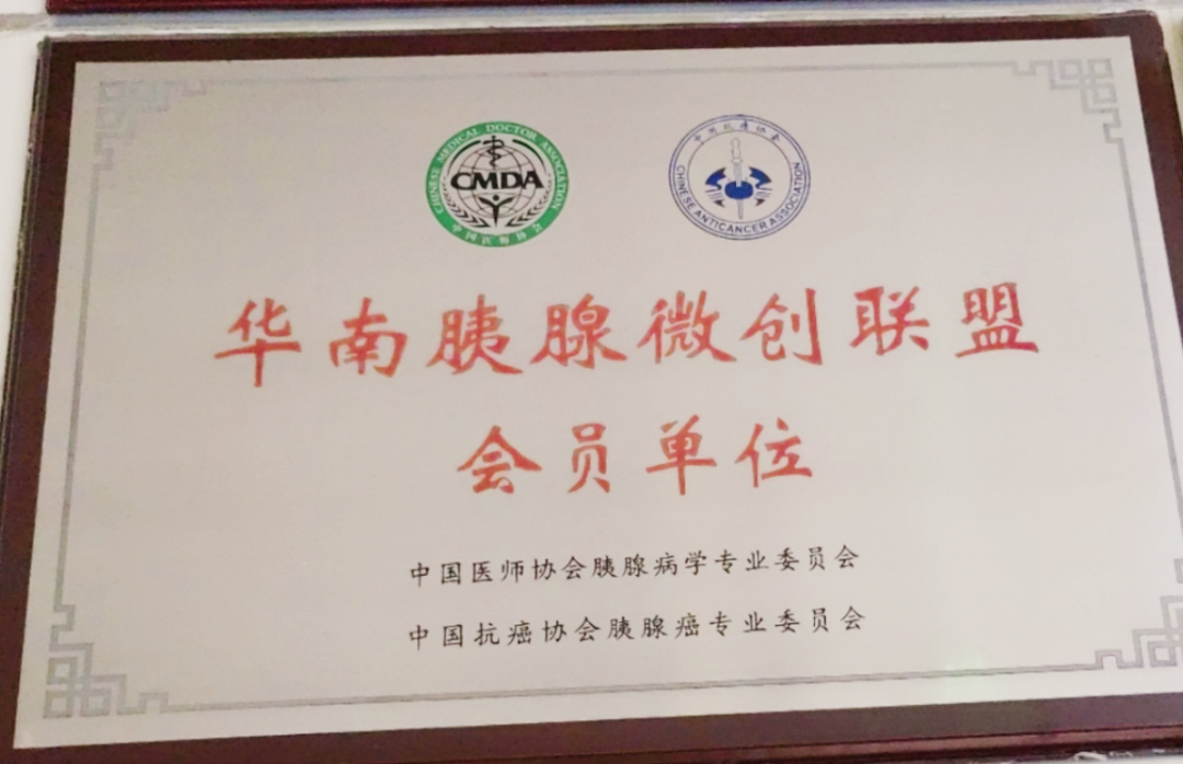 我院肝胆胰疝外科于2020年成为由中国医师协会胰腺病学专业委员会授权的“华南胰腺微创联盟会员单位”。同时,随着我院胆胰诊治技术的不断发展,我院肝胆胰疝外科逐渐获得国内大型胰腺中心—广东省人民医院胰腺中心的认可,并于今年7月份授权为广东省人民医院胰腺中心“花都胰腺分中心”,这为我院肝胆胰疝外科胰胆胰诊疗技术的发展翻开了新的篇章,同时也为广州北部地区肝胆胰肿瘤患者的医疗保障奠定了坚实的基础。