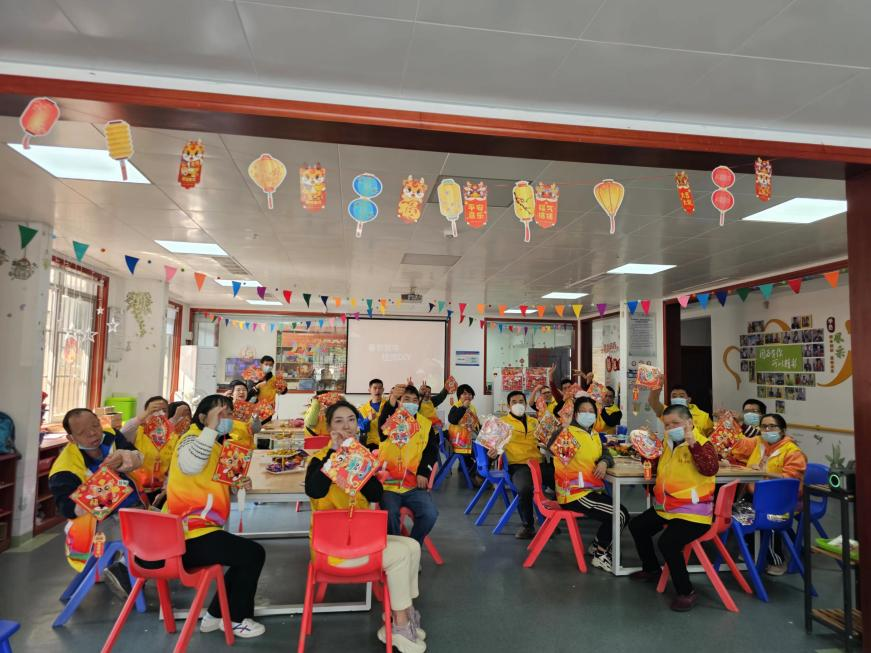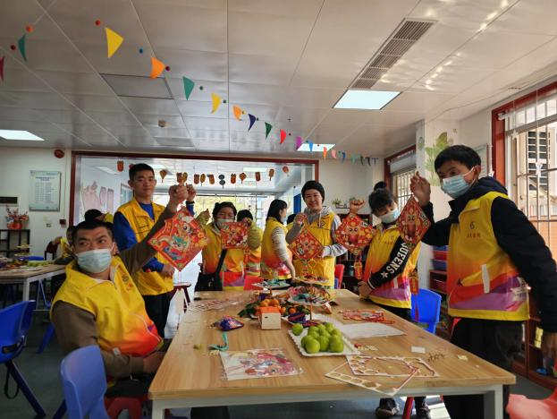 你说我猜结束后,中心学员在会员及爱心人士的配合指导下下顺利的完成了新年手工饰品的制作,看着自己动手制作的工艺品,学员们脸上都露出了幸福开心的笑容。