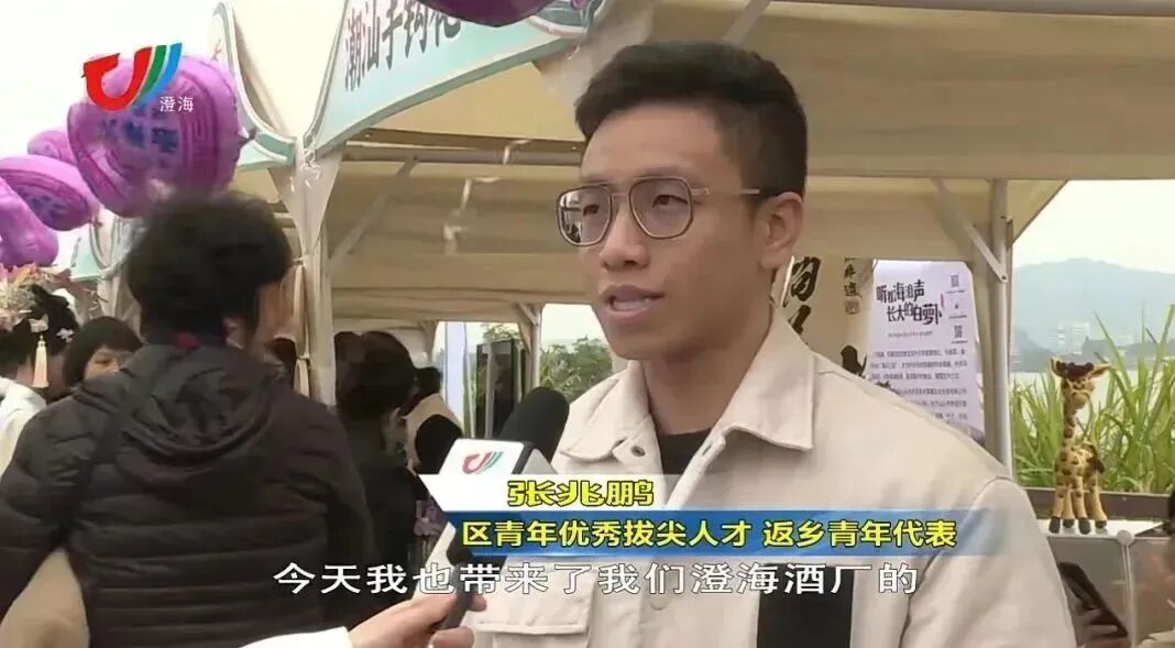 张兆鹏在2018年大学毕业后义无反顾回到家乡工作,现在作为澄海区青年优秀拔尖人才、返乡青年,在企业中努力发挥自身作用,从产品端到销售端全方位积极推动创新,让澄海酒厂这个百年老字号企业更好地适应互联网新时代。