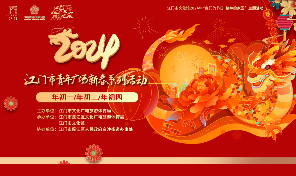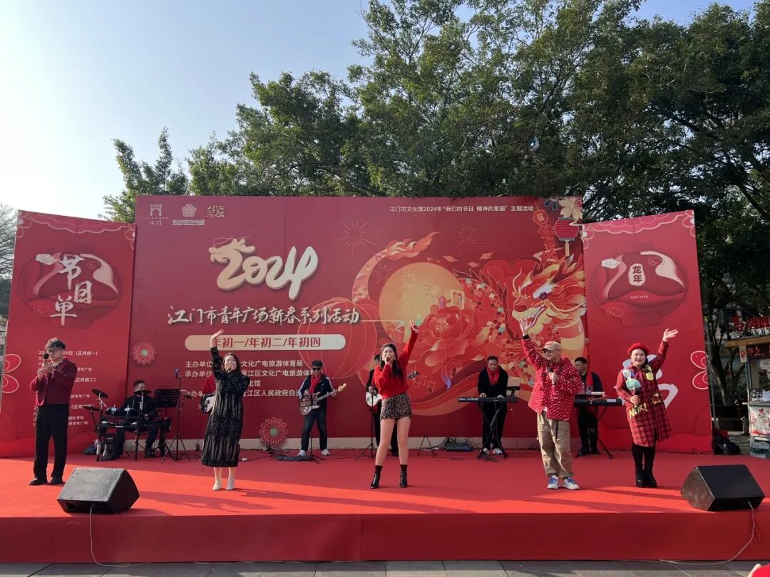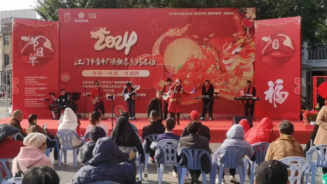 春节年年过,岁岁各不同。为贯彻落实省文化和旅游厅关于开展乡村公共文化新空间建设的决策部署, 推动我市公共文化服务均衡化、规范化发展,助力文旅深度融合、乡村文化振兴,进一步丰富人民群众精神文化生活,营造喜庆祥和、健康文明的节日气氛,春节期间,江门市文化馆以长堤青年广场为主阵地,精心组织策划了“我们的节日 精神的家园”主题活动暨“2024江门市青年广场新春系列活动”,邀您畅游江门“三点三”精彩之旅。活动内容丰富,形式多样,“年味儿”十足,“侨味儿”浓郁,为创新拓展公共文化新空间、扩大公共文化服务覆盖面作出新尝试。