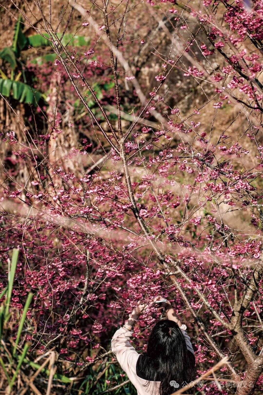 春节期间,高州市马贵镇甘埇村委会下水尾村近200亩的樱花谷成为游客争相打卡的新晋网红地。通讯员 李旺贵 摄