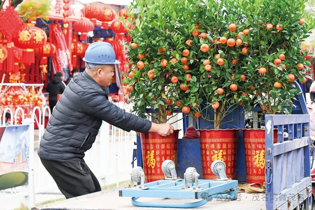 9日,记者走进茂名滨海新区,看到大街小巷张灯结彩,装扮一新,年味十分浓厚。图为市民选购应节年桔、花卉。茂名日报社全媒体记者 莫积均 摄
