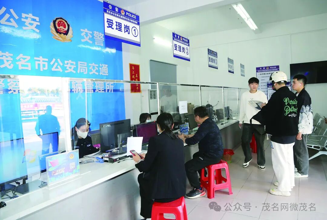 市车管部门推行“假期专办”,便民服务“不打烊”。图为车管所工作人员为市民办理业务。茂名日报社全媒体记者 李颜东 摄