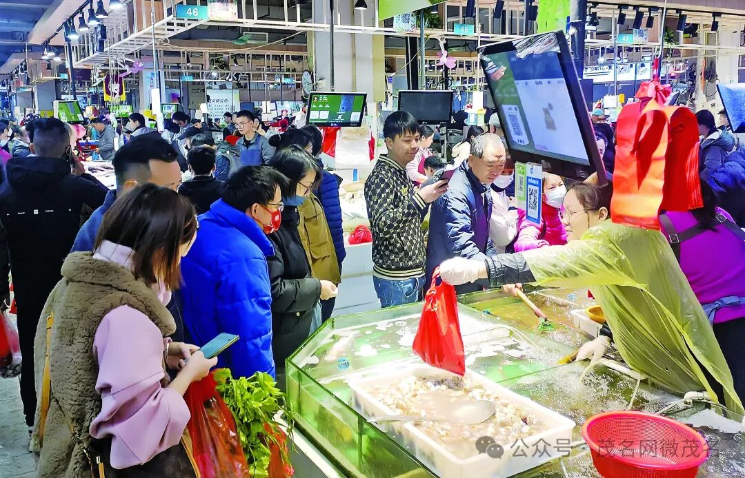 春节期间,茂名市区各大市场海产、肉类、蔬菜供应充足,满足茂名市民过节需求。茂名日报社全媒体记者 甘杨松 摄