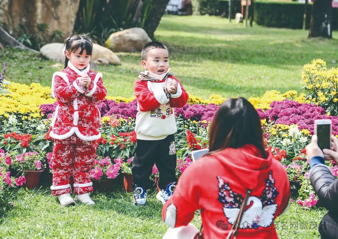 在市区文化广场,不少市民在迎春景点前欢乐合影,喜迎新春佳节。茂名日报社全媒体记者 岑稳 摄