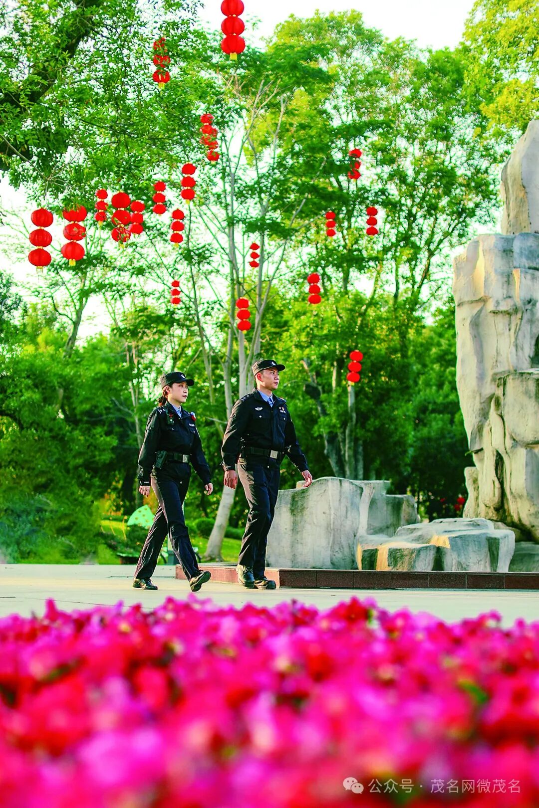 茂南警方在市区新湖公园开展巡逻。通讯员 麦田田 摄