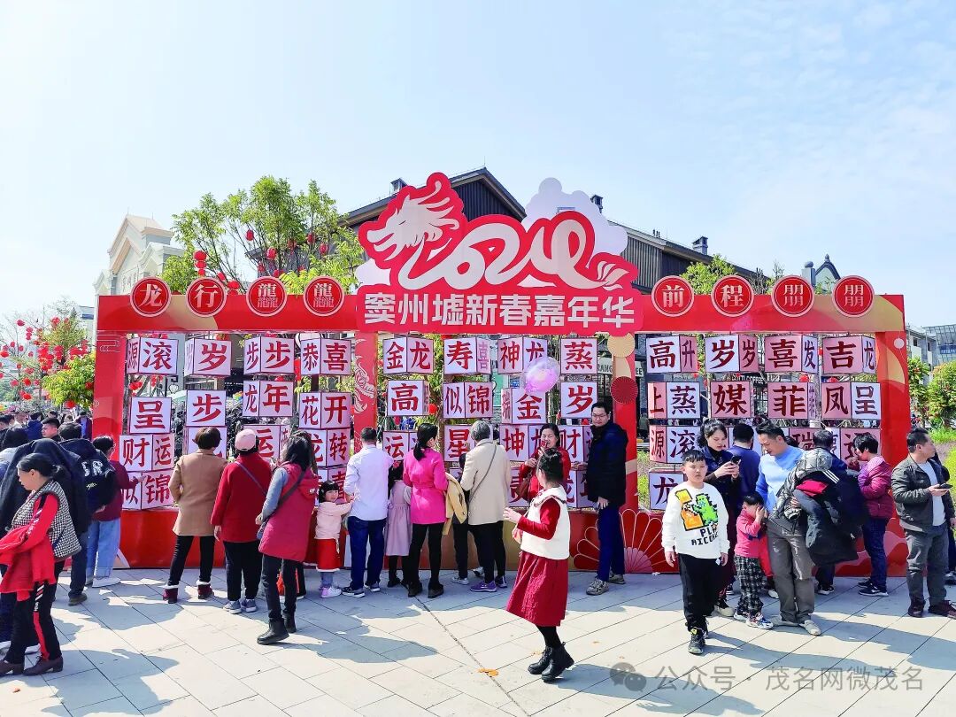 新年伊始,万象更新。信宜市窦州墟年味浓郁,龙狮舞动,多彩活动花式玩转春节。图为窦州墟新春活动打卡点。茂名日报社全媒体记者 蔡林琳 摄