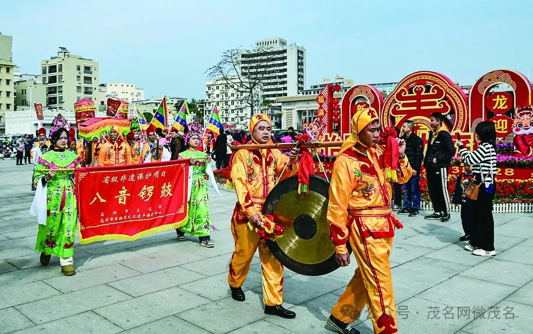 2月10日,龙年大年初一,为了营造喜庆祥和的节日氛围,给高州市人民送上美好祝愿,当日上午,省级非遗保护项目“八音锣鼓”巡游活动在高州市城区举行。茂名日报社全媒体记者 黄信涛 摄