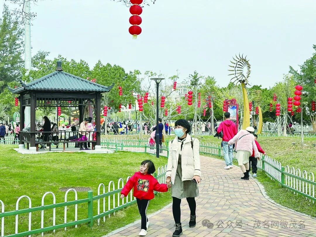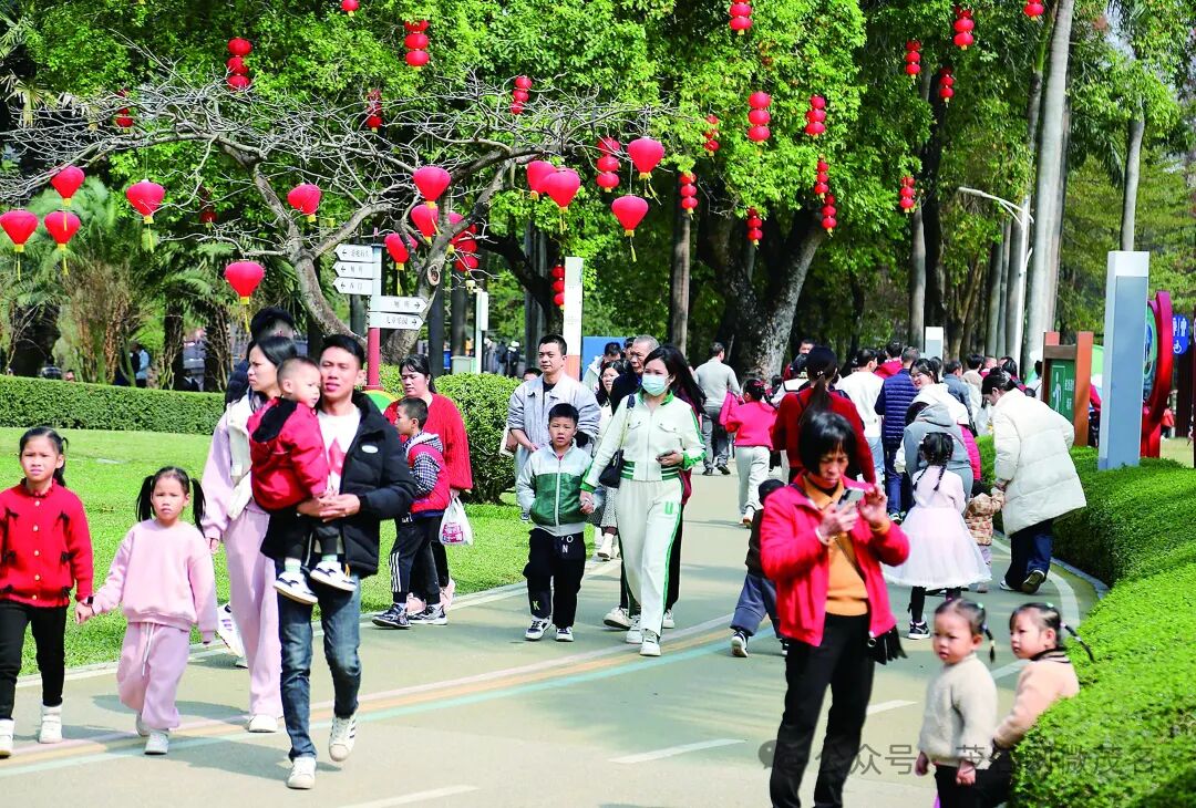 春节假期,市区新湖公园游客络绎不绝,一派祥和欢乐的过年气氛。茂名日报社全媒体记者 岑稳 摄