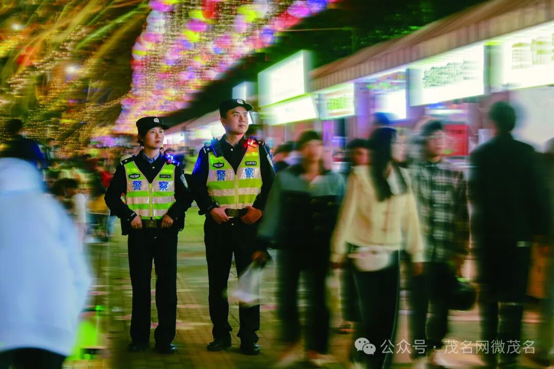 茂名公安加强与当地政府、文旅、应急等部门联勤联动,全力打造“治安防控有力度、便民服务有温度、后勤保障有速度”的旅游特色警务。图为警力在东江八点文旅特色街开展巡逻。通讯员 麦田田 摄