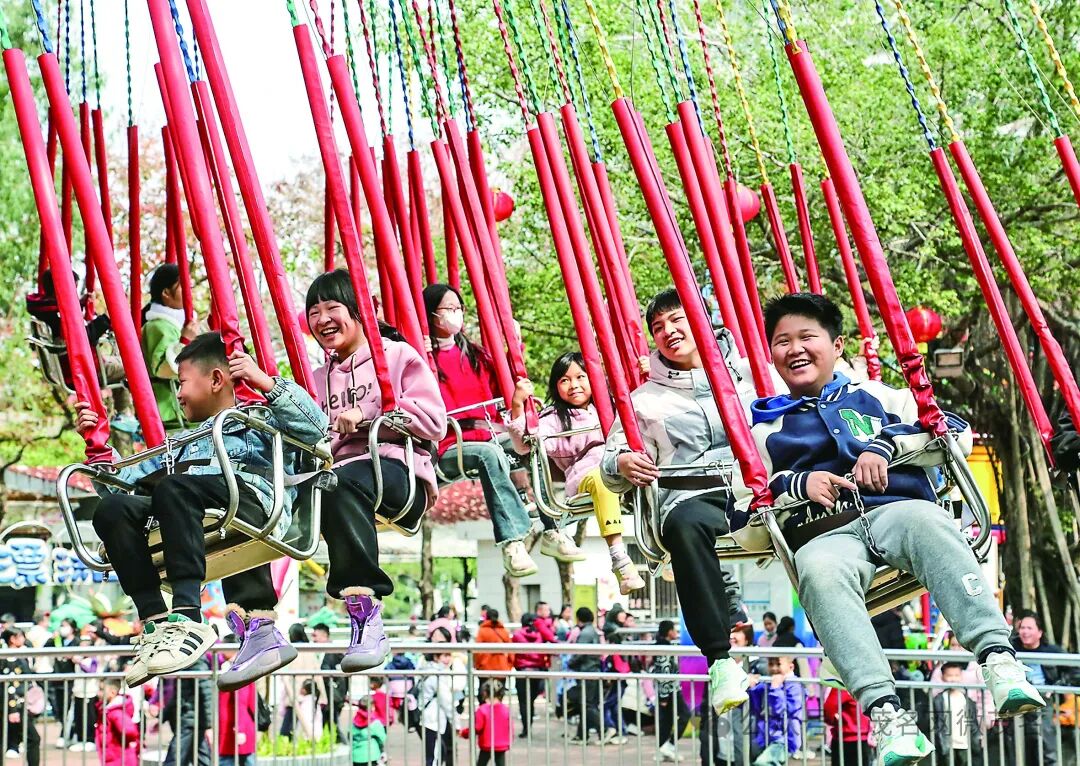 春节期间,市民们各个笑逐颜开,笑语欢歌飘荡空中,呈现出一派热闹欢腾、喜庆祥和的新春节日氛围。茂名日报社全媒体记者 岑稳 摄