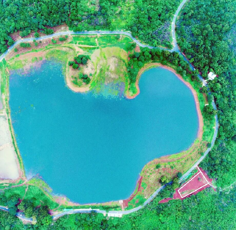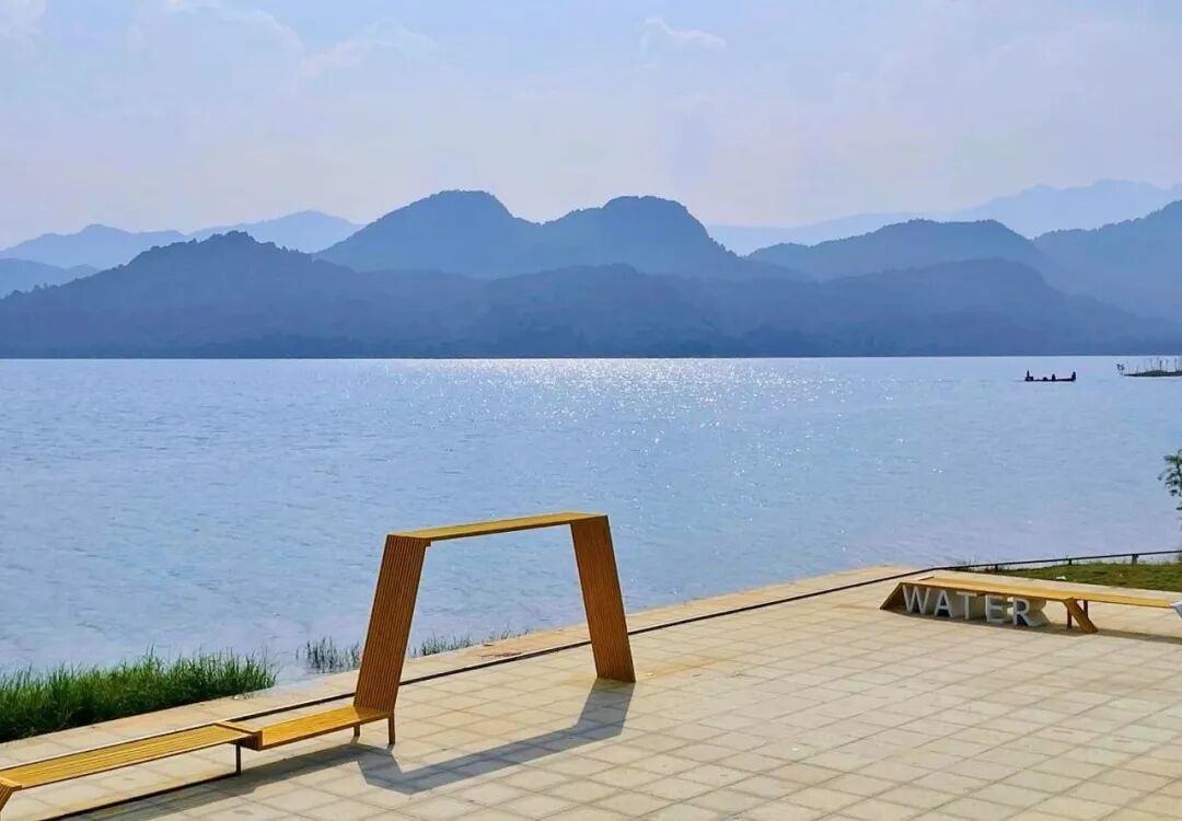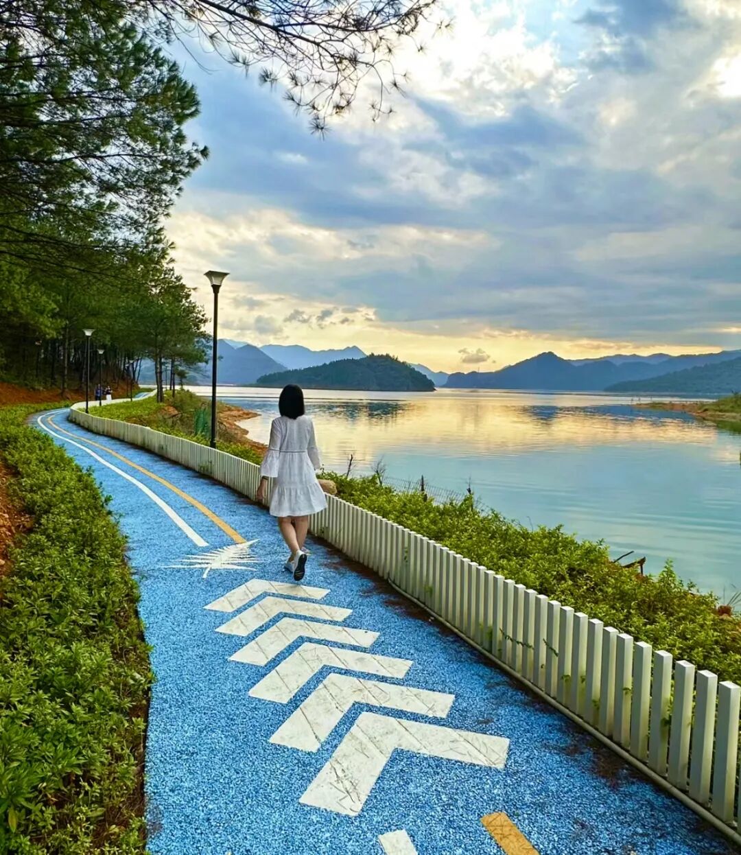 一路向前,就能看到公路旁有一个美丽的湖泊,碧水倒映着蓝天,粼粼水波,就像丝绸上的细纹。走在小道上,可以大口地呼吸,感受林间满满的负氧离子,让人身心愉悦、充满幸福感~