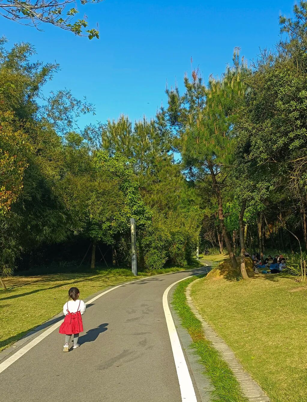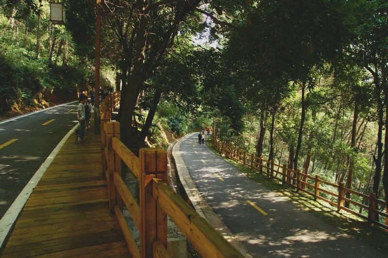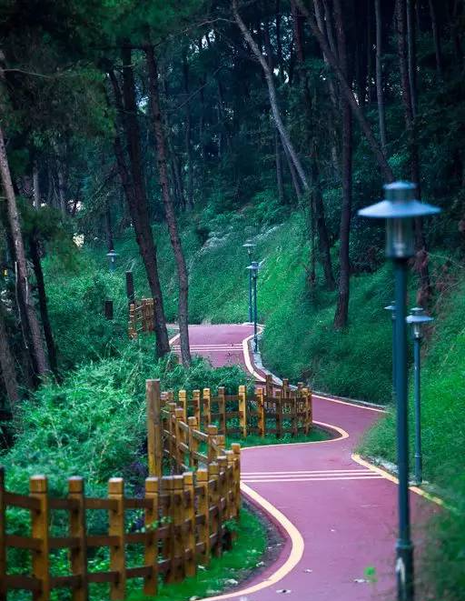 公园空气清新、绿意盎然。平时就有不少运动爱好者沿着公园附近依山傍水的环山公路骑行和徒步。