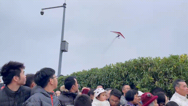 除了热闹非凡的地面活动,天空飞行表演也同样精彩。当天下午,来自鼎湖砚洲岛航空营地的“锐翔航空飞行表演队”现身空中,以跃升、急上升盘旋、俯冲和大坡度盘旋等一系列高空高难度动作,让现场市民游客大饱眼福连声惊叹。