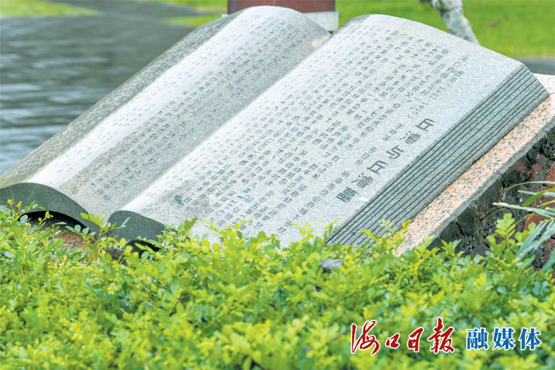 丘濬墓旁的“书”状石刻,记载着丘濬与丘濬墓的历史脉络。海口日报融媒体记者 康登淋 摄