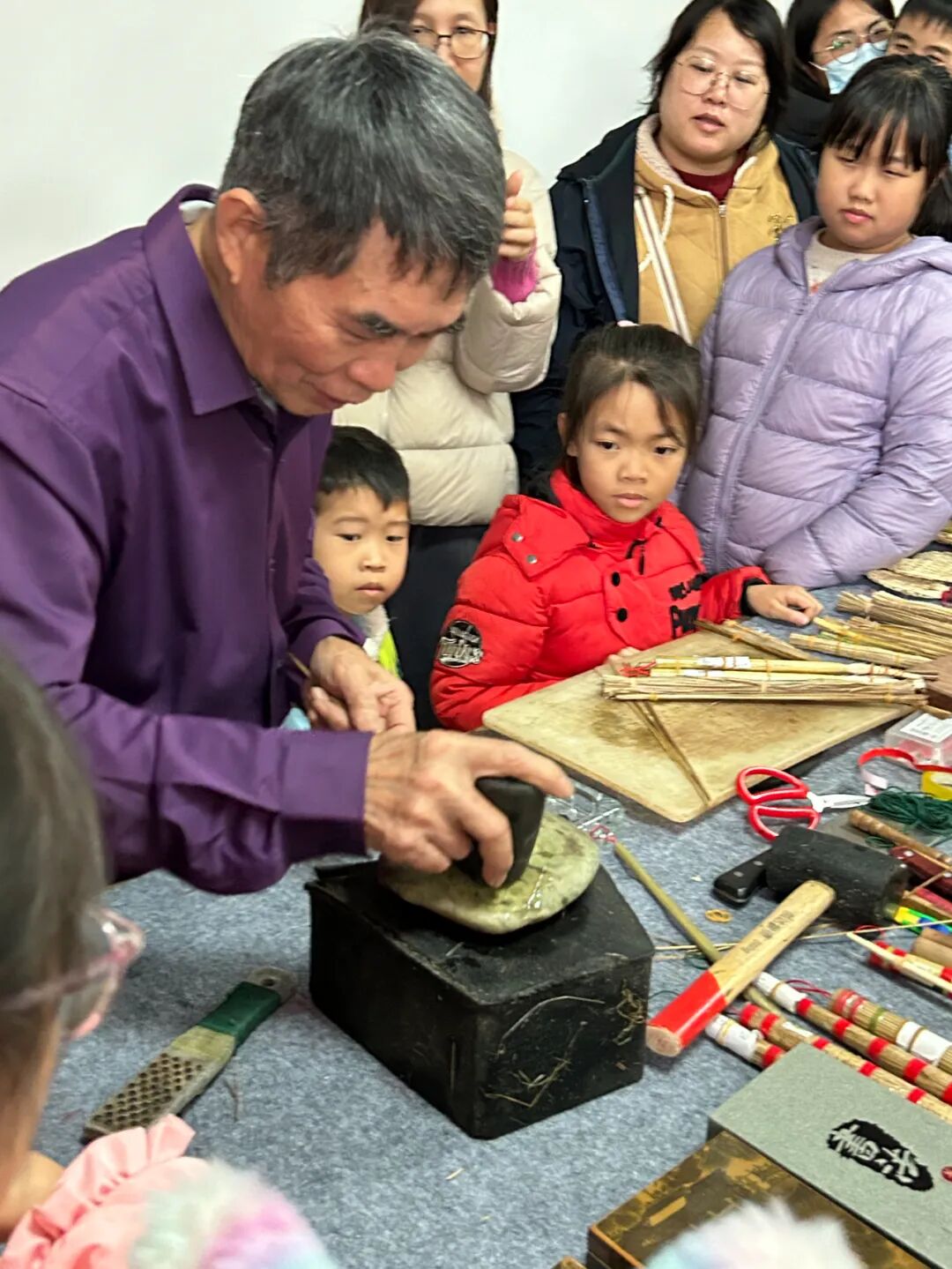 活动进入了最为精彩的环节——茅龙笔制作体验。在老师的指导下,参与者们亲自动手,体验了从剪茅、浸泡、锤砸、刮青、捻茅、捆扎到固化笔杆等一系列制作过程。虽然过程看似简单,但实际操作起来却并不容易。然而,正是这种亲手制作的过程,让参与者们更加深入地感受到了传统文化的魅力和工匠精神的独特价值。