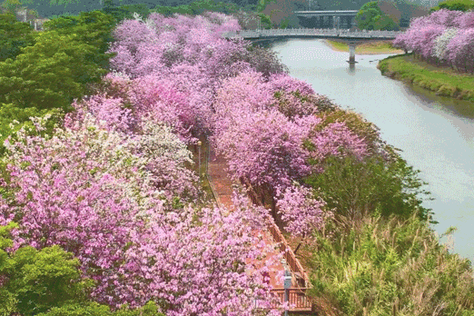 种植全市数量最多的宫粉紫荆,就在花都湖国家湿地公园,10万棵打造出梦幻花海,踏着落花,迎着飞花,走的每一步都是“花路”!
