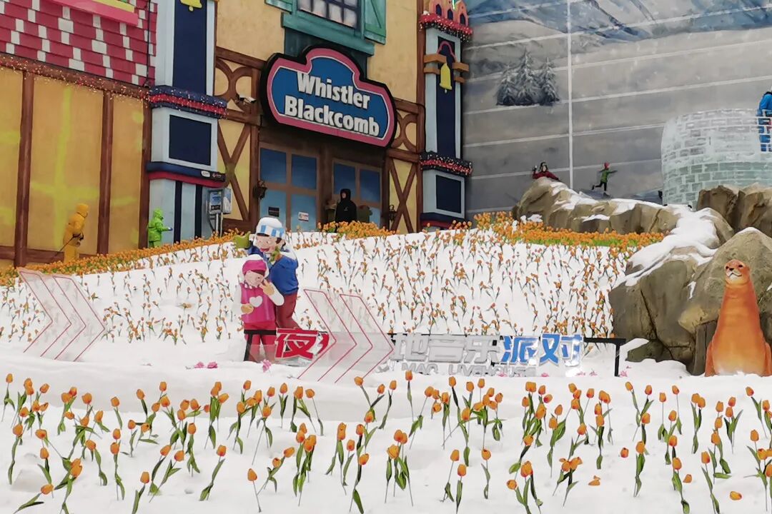 郁金香见多了,但在雪地上盛开的郁金香见过吗?广州热雪奇迹实现了“赏雪观花”在雪场打造花海,让你在白雪中驰骋时