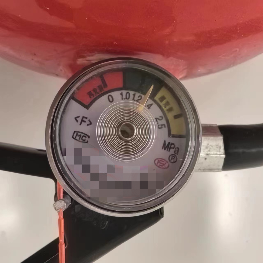 ✍指示针若指向红色区域则说明灭火器压力不足,影响灭火剂的喷射,需要再充装;
