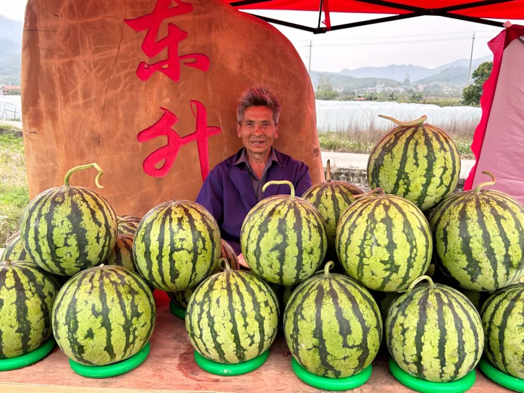 该基地负责人名叫龙标,是一名有着多年种瓜经验的贵州人。去年12月,龙标看中了麻榨镇优良的自然条件,在东升村小组租下一片土地种植麒麟西瓜,经过三个多月的生长,现在基地的麒麟西瓜迎来了成熟季。