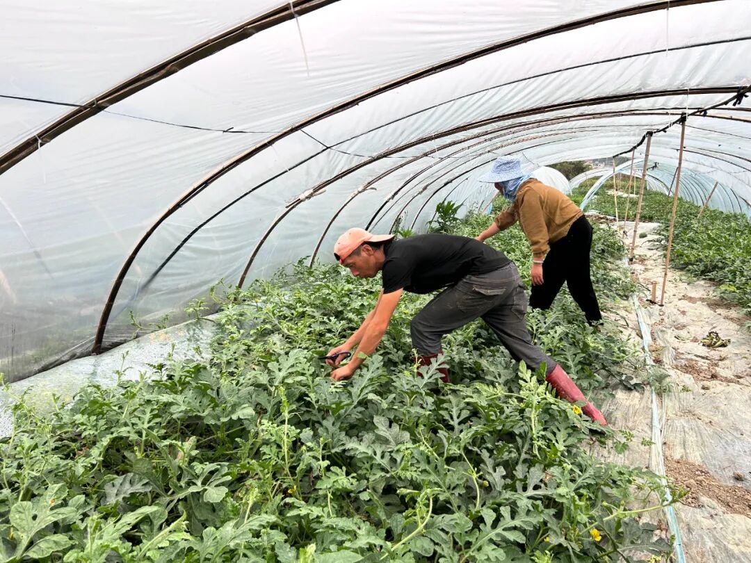 我和老婆在贵州老家就是种植麒麟瓜的。去年8月,我就专门过来考察了两次,现在是来这里第一年,跟当地村民租下了这片将近20亩的土地来种植。从开始种,在管理好、温度正常的情况下,30天到40天就要留瓜,40天就可以成熟了。