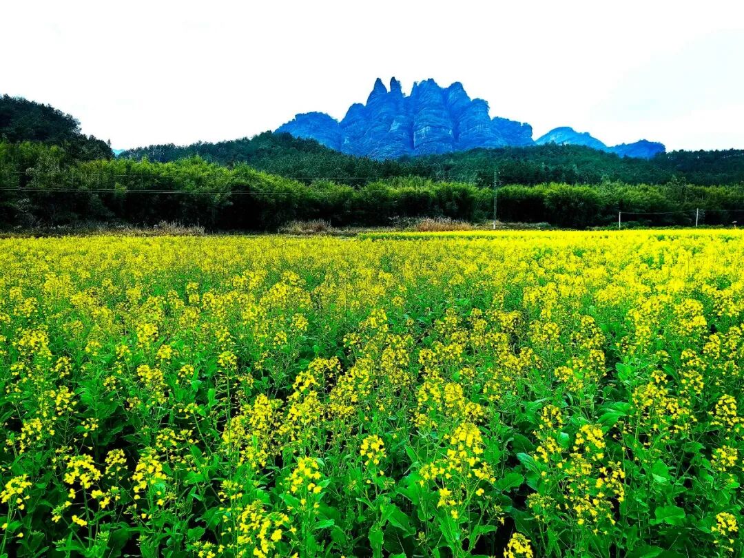 时下,位于丹霞山腹地的夏富村、车湾村等地的千余亩油菜迎来了油菜花盛花期,黄色的花朵散漫大地,满屏都是关不住的春色。