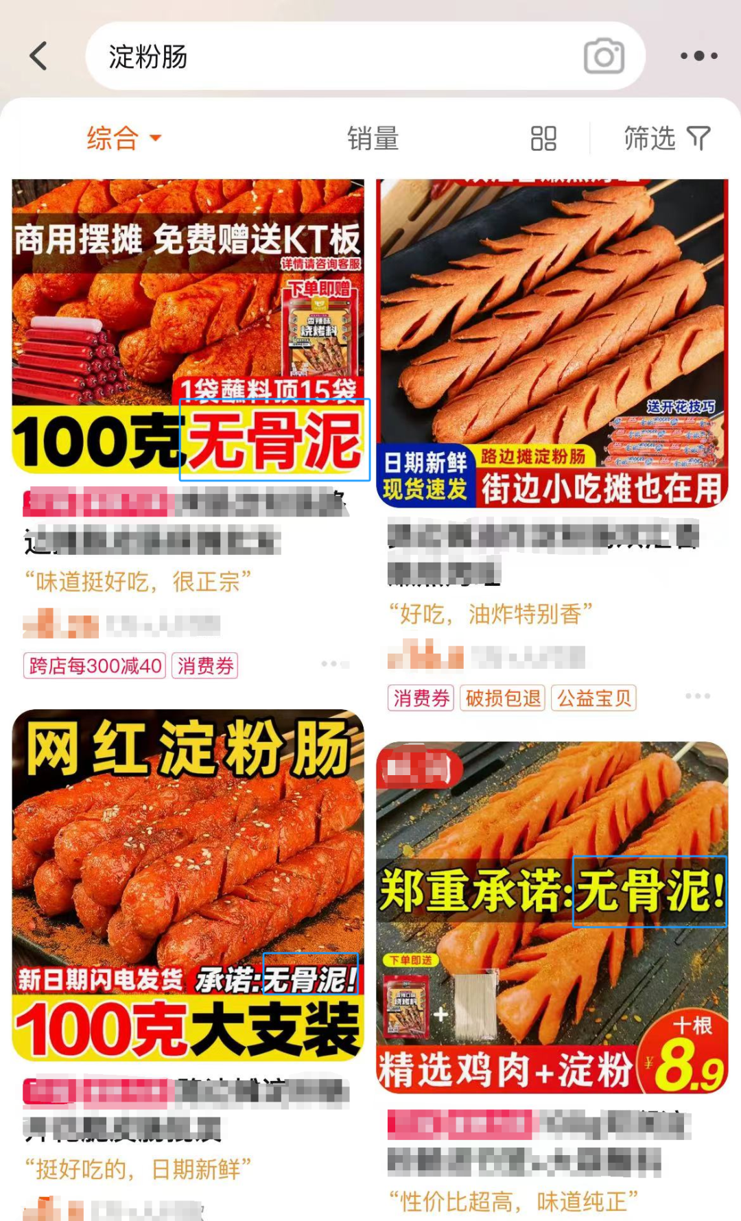 电商平台上的“淀粉肠”特意标注“无骨泥”