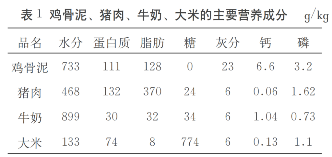 鸡骨泥充当食品的配料已经有一段历史了,在《肉类工业》上的一篇文章中写道,每1kg鸡骨泥中约含有蛋白质111g、脂肪128g、灰分23g、钙6.6g、磷3.2g。
