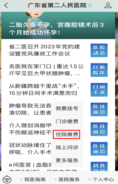 3.结算支付方式可支持微信、支付宝支付和广州医保个账 (前提要在公众号绑定个人医保卡)支付。