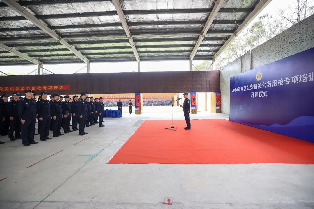 为全面贯彻落实省公安厅、市公安局练兵工作总体部署,切实提升全区公安机关实战能力,以高质量教育训练推动公安工作高质量发展,3月22日上午,顺德公安在警察训练基地举行2024年全区公安机关公务用枪专项培训开训仪式,正式拉开全年练兵序幕。