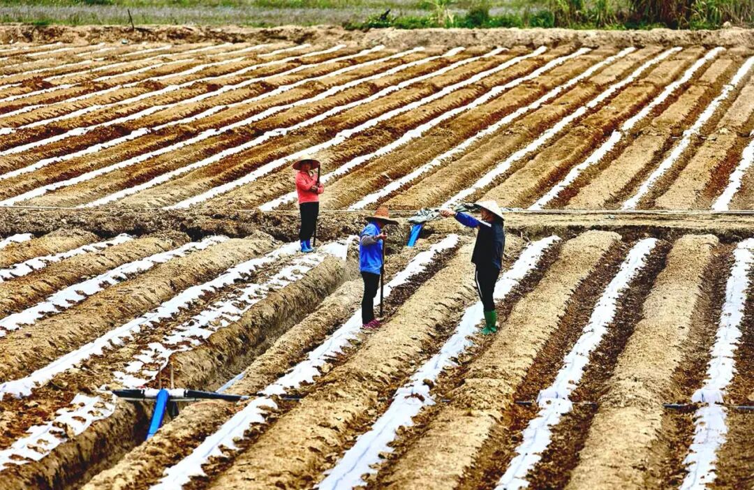 2024年3月21日,佛冈县龙山湴镇村,村民们趁着好天气在田里耕种。清远日报签约摄影师 李国标 摄
