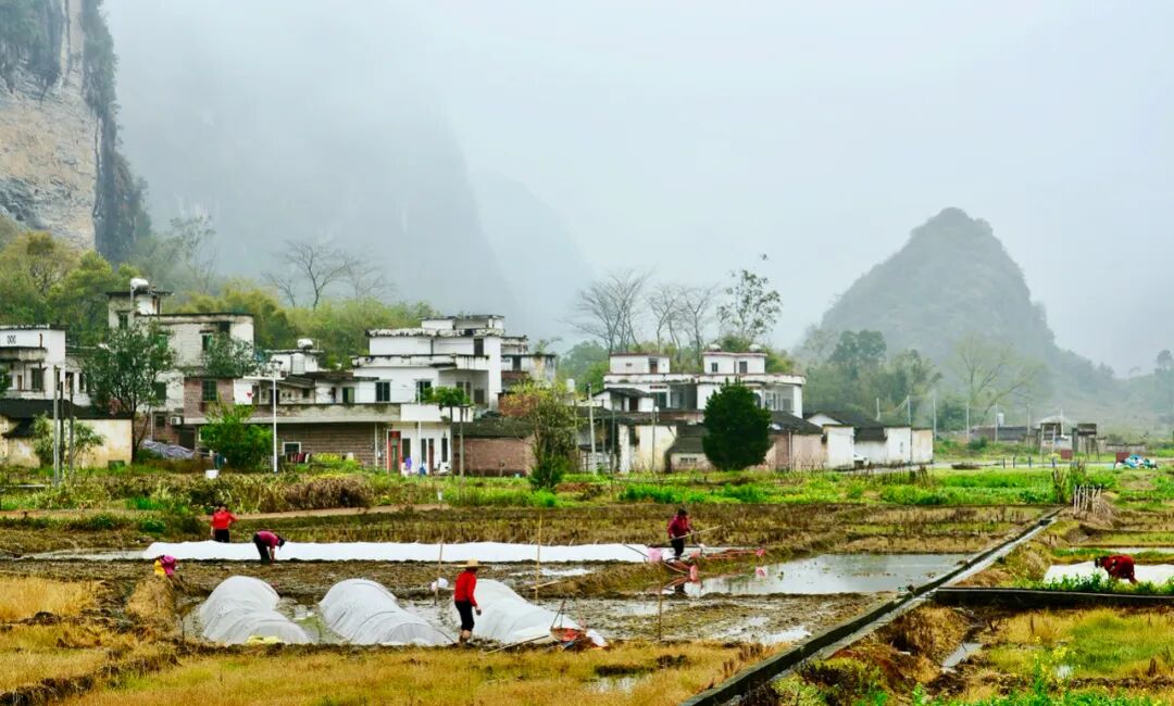 在被高楼包围的一方田地里,在被绿树环绕的村庄里,在被高山环抱的山脚下,勤劳的人们找到每一块可以耕种的土地,播撒石灰粉、翻土松土、插秧播种、浇水施肥……
