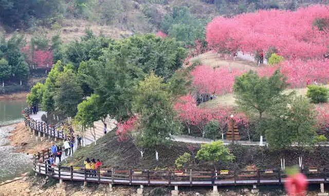 【南澳黄花山】位于南澳西半岛的黄花山森林公园,是集旅游、休闲和娱乐于一体的旅游区。这里种植了3000多株桃树,如今,桃花漫山遍野,与湖水、小桥相互辉映,宛若桃源仙境。