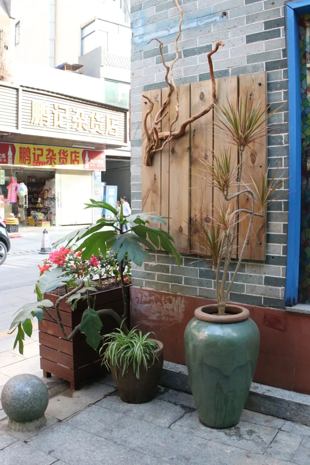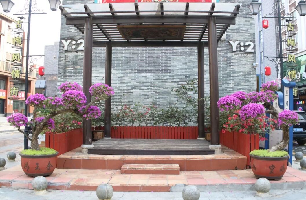 作为一条美丽示范主街,古梅风情街是对外展现美丽城镇整体形象的重要“窗口”。沿线商铺密集、居民众多,在沿途的道路旁、商铺前、口袋公园里,通过摆放盆栽花卉设置“微景观”,巧用花箱见缝“插绿”、沿街“绣花”,打造了错落有致的道路街景。