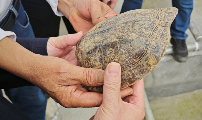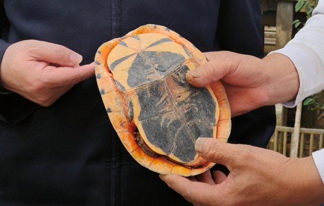 金钱龟学名三线闭壳龟,是龟鳖目龟科闭壳龟属爬行动物,以其独特的文化寓意、观赏价值和药用价值而著称。金钱龟主要生活在清澈的溪流、河流或湖泊中,喜欢在水流缓慢、植被丰富的环境中栖息。完璧金钱龟养殖有限公司董事长赵良标是云浮本地人,长期致力于乡村特色产业的思考与实践。他介绍,云浮地区山清水秀的自然环境为金钱龟提供了理想的生活条件,完璧金钱龟养殖基地的龟舍宽敞,种植金丝楠木等名贵树种,养殖环境好,金钱龟品质高。