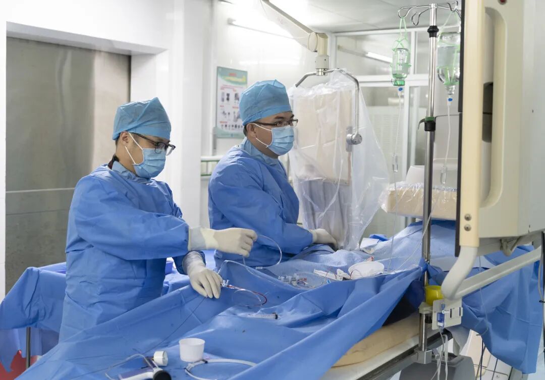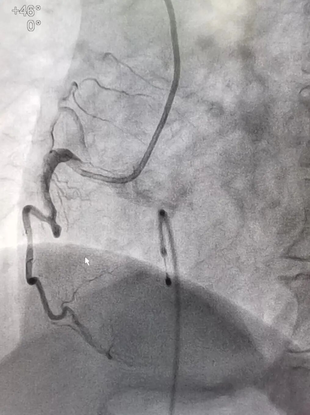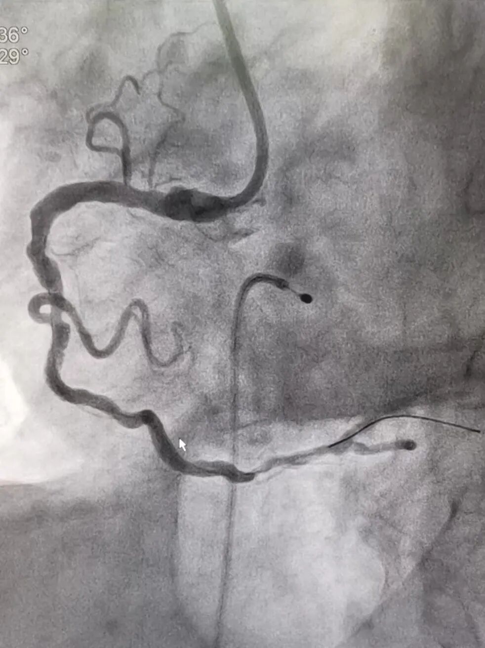 患者存在急性ST段抬高型心肌梗死,想要逆转“电风暴”,必须马上实施急诊冠脉造影检查,开通心脏闭塞血管。胸痛中心团队已全部准备就绪,很快,在呼吸机和临时起搏器的支持下患者被送入导管室。陈桂坚主任医师与郑林立主治医师先为患者行冠状动脉造影,造影提示:右冠状动脉中段急性完全闭塞。团队凭借丰富的经验及精湛的技术,快速开通闭塞的冠状动脉血管,完成支架植入,血管通了。顺利完成手术后,患者被转入ICU继续接受治疗,第7天成功脱离呼吸机、拔除气管插管。第8天病情稳定转回心血管内科病房。经过医护人员的精心治疗,患者目前已康复出院。
