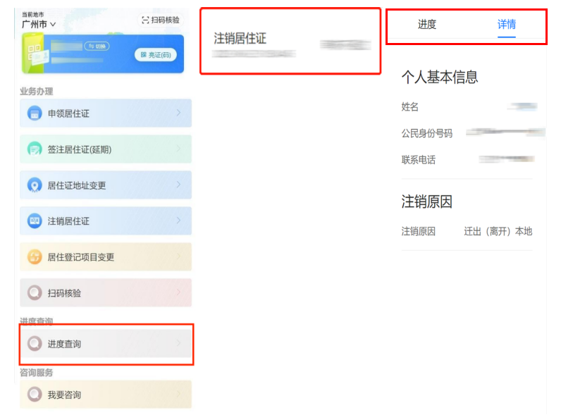 市民朋友可在“粤居码”微信小程序首页【进度查询】,查看办理进度及详情。