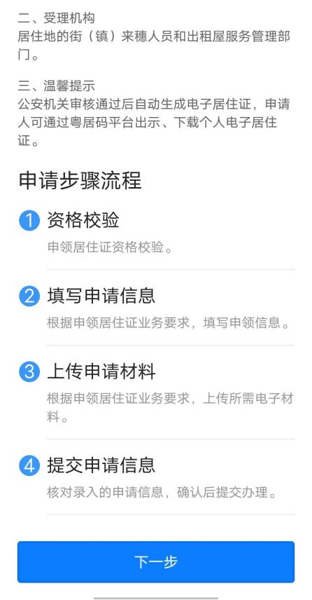 2.在办理须知页面点击【下一步】,资格校验通过直接进入填写信息页面;