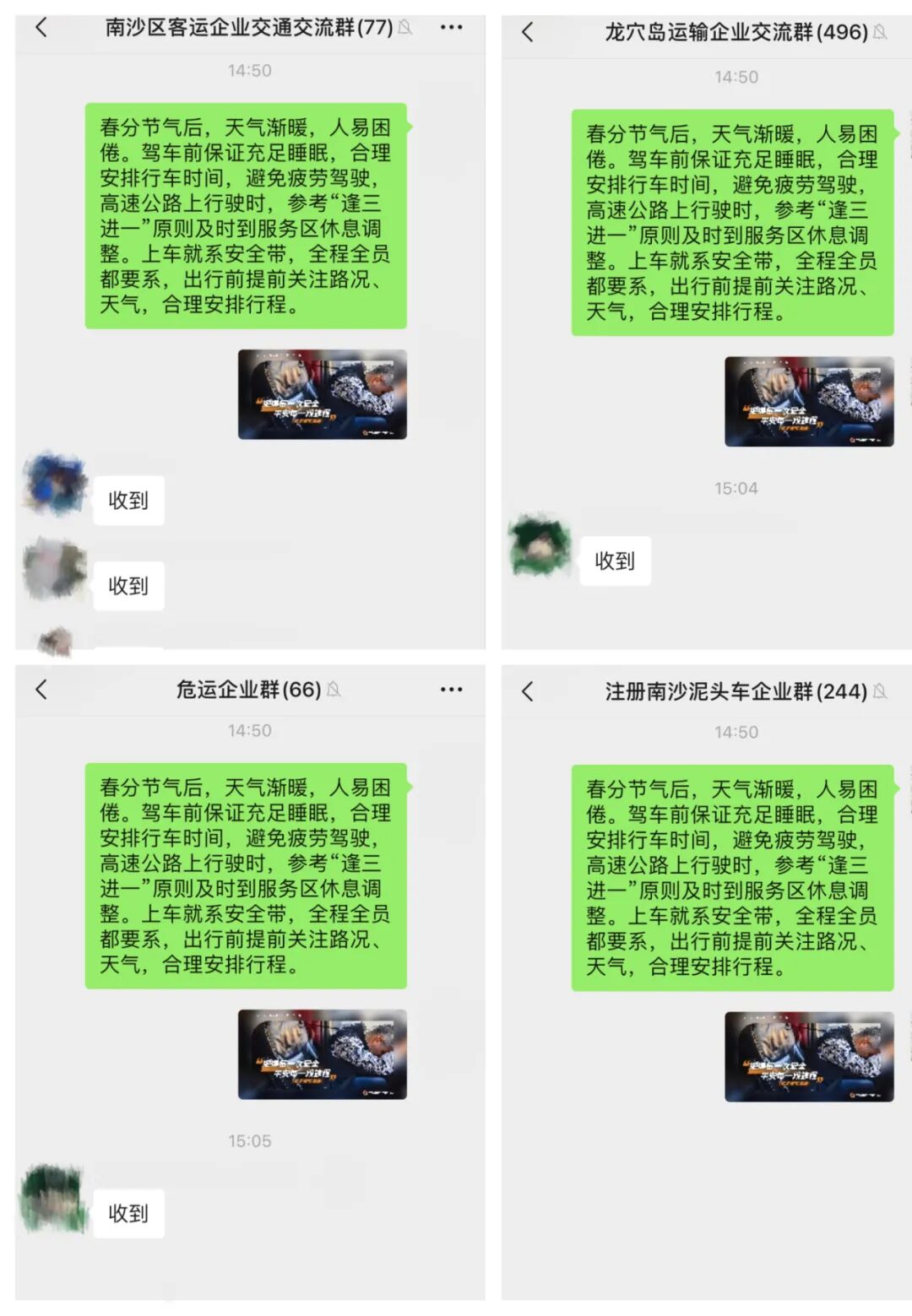 充分发挥“小网格”微信群的功能作用,扩散10个企业群,群人数达1500余人,利用微信群的方寸之地,巧做交通安全宣传文章,起到良好的宣传教育效果。
