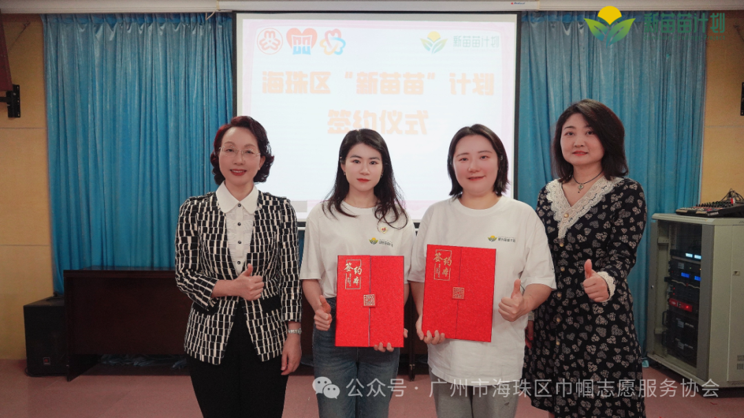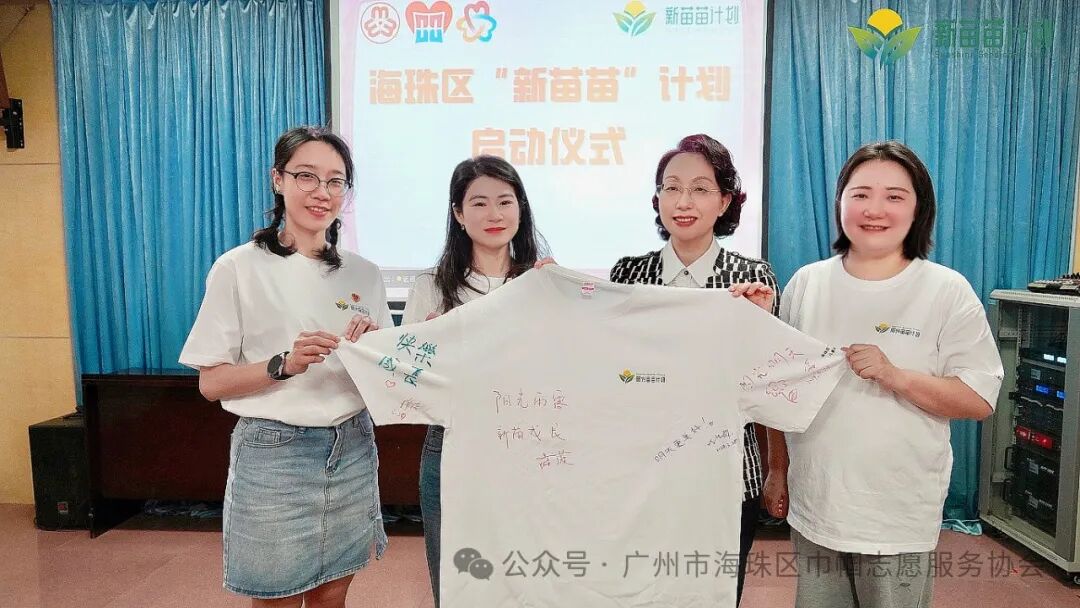一笔一划聚力量,一点一滴干实事。海珠区妇联主席蒋薇、华新公益基金会理事长冯逸怡、华新公益基金会秘书长卢璐、协会会长徐佳一同在印有“阳光苗苗成长计划”的项目特制T恤上写下对海珠儿童的期盼与愿景。在大家共同写下祝愿的那一刻,意味着“新苗苗”儿童成长计划的正式落地,也标志着海珠区儿童友好事业发展迈出了新的一步!