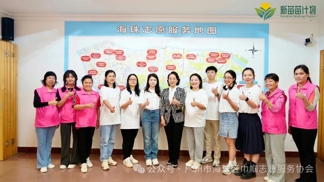 最后,华新公益基金会成员众人齐心,将“华新苗苗志愿服务队”队牌贴在海珠巾帼志愿服务地图上,即日起,海珠辖区内又扬起一面志愿服务旗帜。