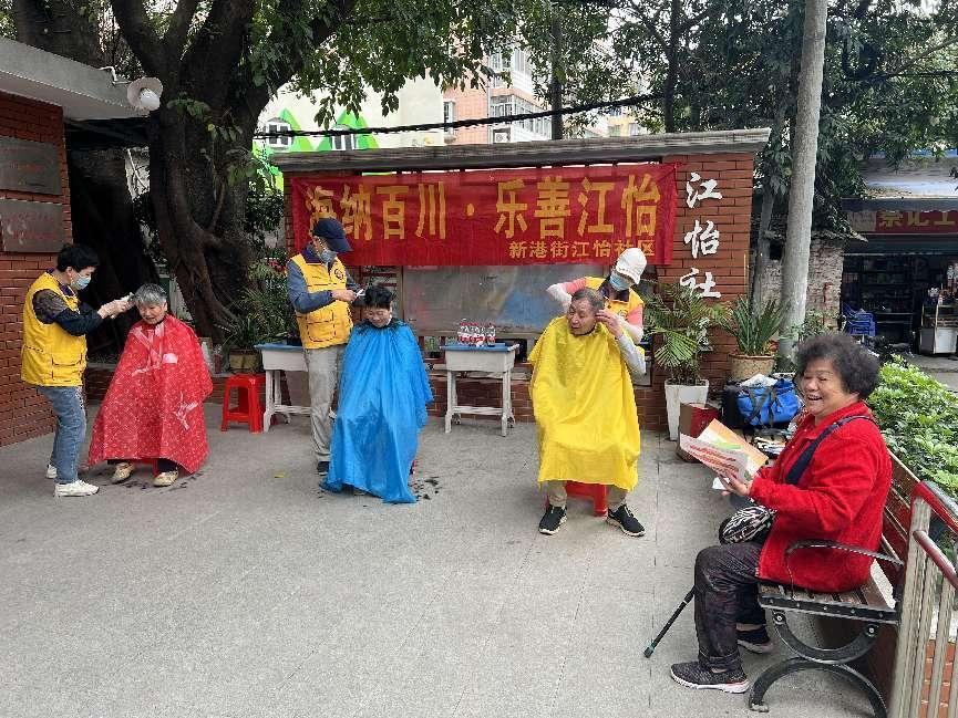 3月22日,值雷锋月之际,广东狮子会华文服务队联合海珠区新港街江怡社区居委会在江怡社区党群服务中心举办“海纳百川 乐善江怡”的义剪活动。
