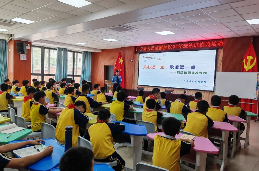 春风和煦,万物生辉。近日,广宁县检察院的检察官们分别走进何楮铭纪念中学、广宁县第七小学,以“防治校园欺凌”为主题为同学们带来别开生面的法治课。