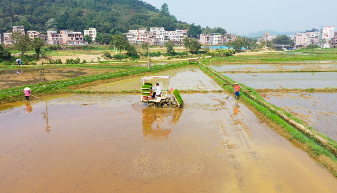 记者来到罗定市泗纶镇亚灿米种植基地田间地头,从机声隆隆中,实地感受当地农民抢抓农时栽插早稻的火热场景。