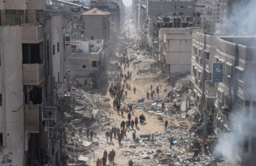 4月1日,在加沙地带加沙城,人们走在希法医院附近的街道上。新华社发