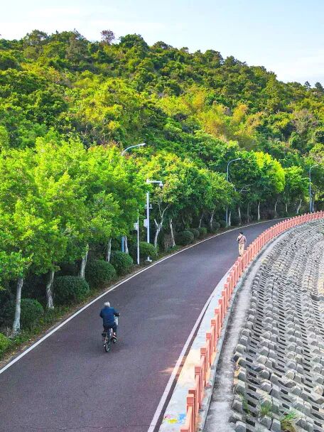 骑行在这条绿道上,将蓝天、白云、阳光、大海,美景尽收眼底,仿佛置身于宫崎骏的动画世界中
