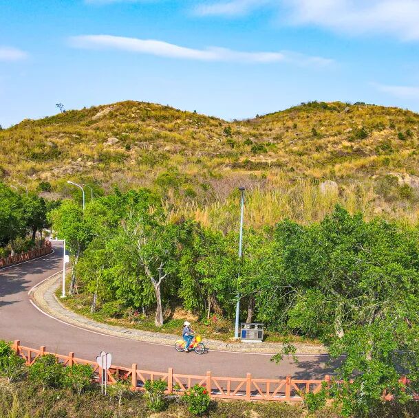 乌山头绿道共设5个景观节点、3个休闲驿站,凭栏伫立,既可赏山林风光,眺万顷碧波,也可亲水而行,嬉戏于滨海岸边,沉浸于原生态的鸟语花香之中。