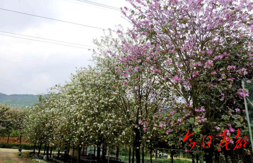 据了解,宫粉紫荆,也叫洋紫荆,五瓣花,花期为3-4月。花开时略带微香,盛花期时满树繁花,粉白相间蔚为壮观。