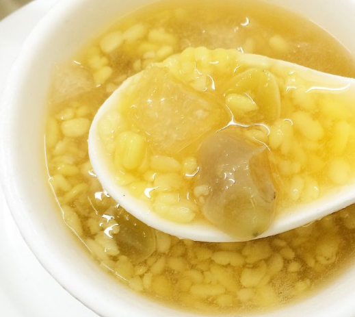 在清洗的过程中,要同时将脱出的绿豆壳捞掉,使之只存下纯净的一畔畔淡黄的绿豆畔,便可把绿豆畔捞起,并沥去其水份。然后,将绿豆畔放入蒸笼里蒸熟,便可下锅煮“绿豆爽”甜汤了。如果大家想丰富口感,也可以加入莲子、银耳、枹杞等等。