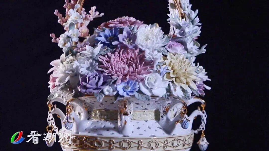 潮州瓷塑采用的技法有雕、镂、塑、捏、贴、刻、划、印、压,枫溪的通花瓷花作品,在海内外更是独树一帜,精雕细刻,玲珑剔透,层次丰富。
